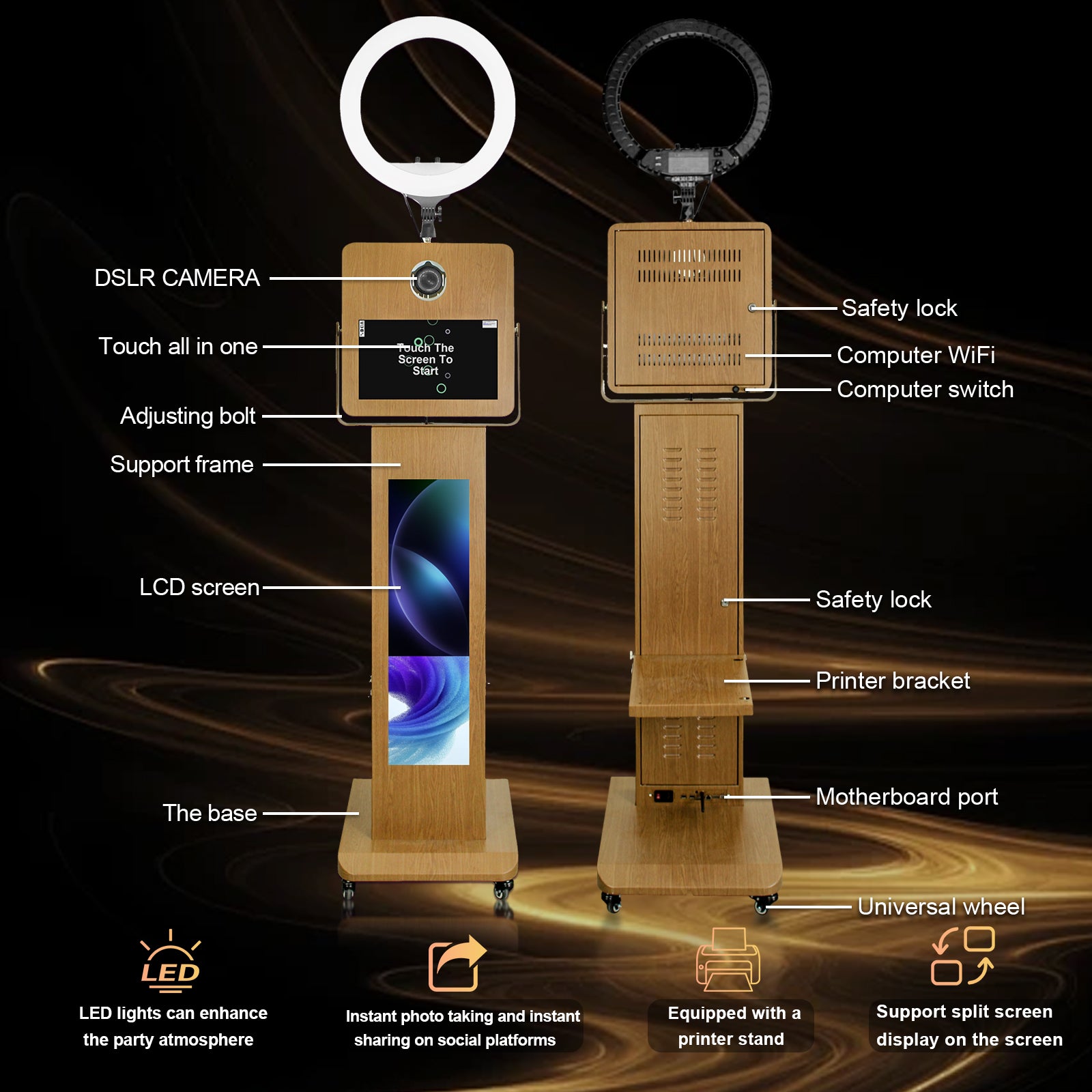 15.6" Mirror Touch Screen Photo Booth Machine 29 Inch LCD Split Screen Photo Booth Selfie Station Shell Stand Photobooth Machine for Events