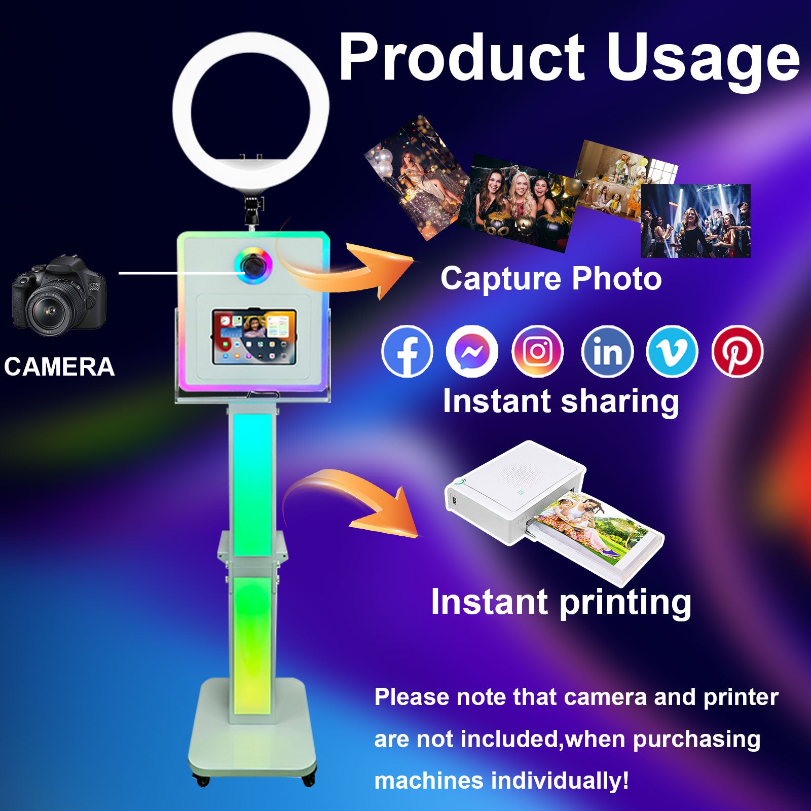START YOUR SIDE BUSINESS: With the continuous development of the photo booth business, more and more people are like to use photo booths to take photo. Putting the selfie photo booth stand into parties, rentals, Christmas, weddings, commercial promotions and other occasions will be a good way to increase income.