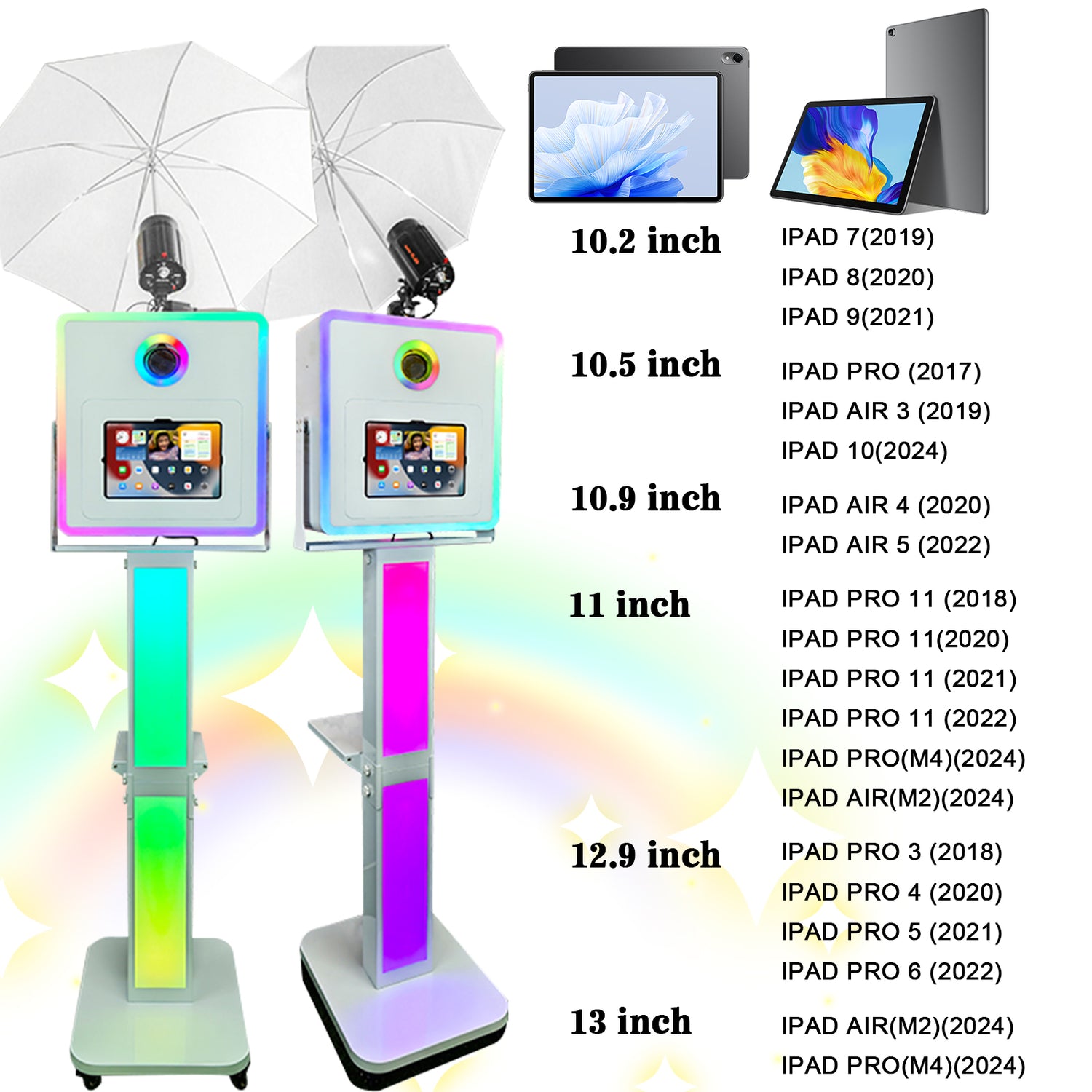 3 in 1 Portable Photo Booth Machine for Ipad 10.2" 10.9" 11" 12.9'' PhotoBooth Stand Shell Provide Cyratok Software RGB Ring Light Music Sync Aluminum Alloy Selfie Photo Booth for Parties Weddings Events