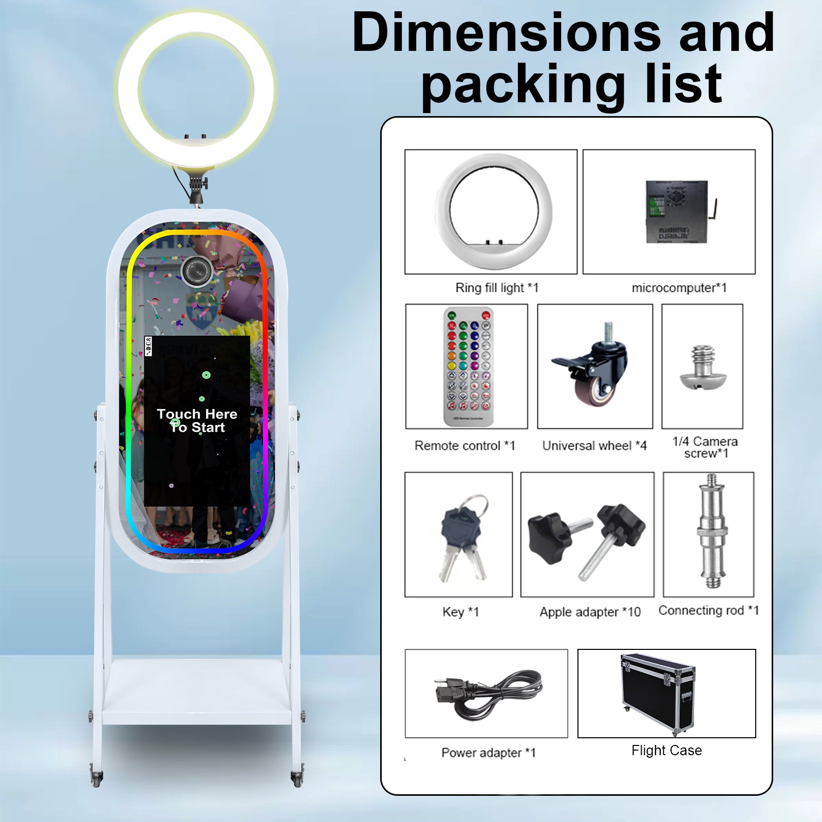 EASY TO CARRY,DURABLE: Portable mirror photo booth is designed with a detachable structure and equipped with a high-quality flight case with wheels,more portable and can be carried around easily.