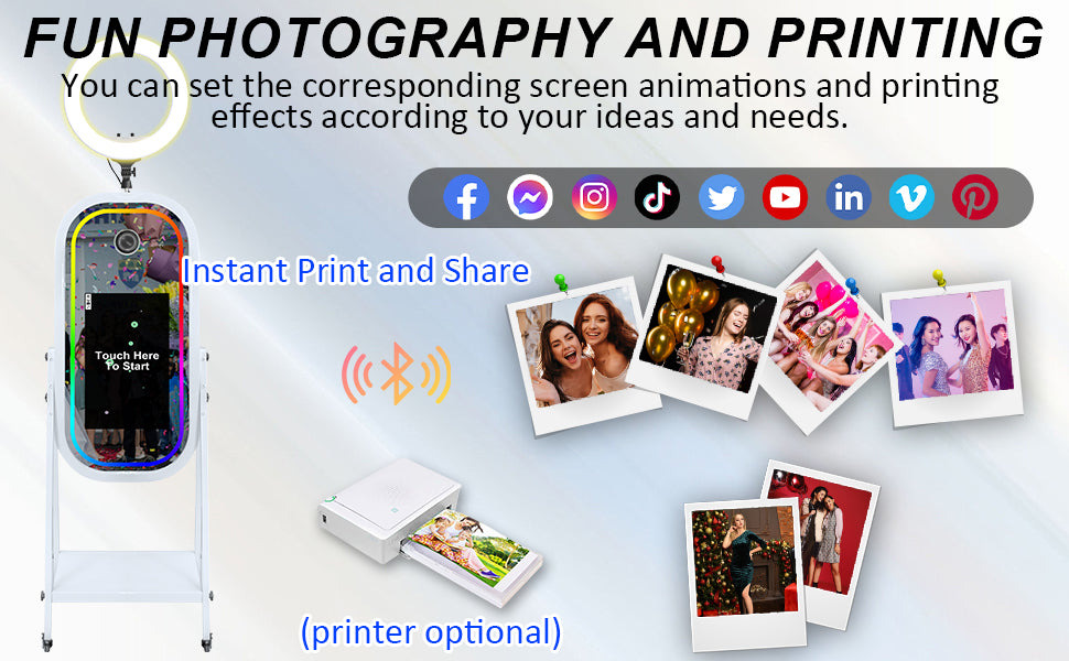 OCCASION,PRACTICABILITY: The latest interactive portable photo booth experience,take pictures freely,the photo booth machine perfect for weddings,birthdays,proms,celebrity events,special occassions,corporate events,enhancing the entertainment value of the event.