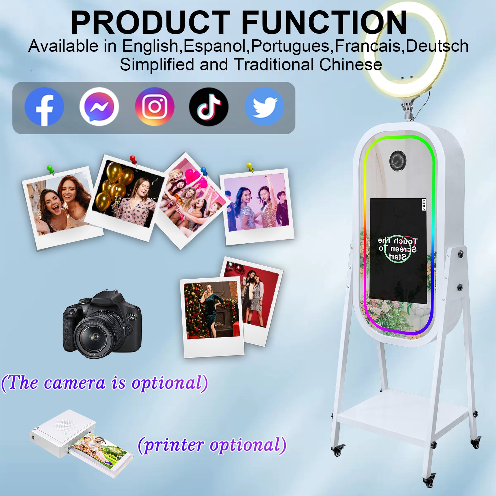 Magic Mirror Photo Booth Machine wiht 21.5" Touch Screen Mirror Photo Booth Selfie Photobooth Machine RGB Light for Event Rental Wedding Party