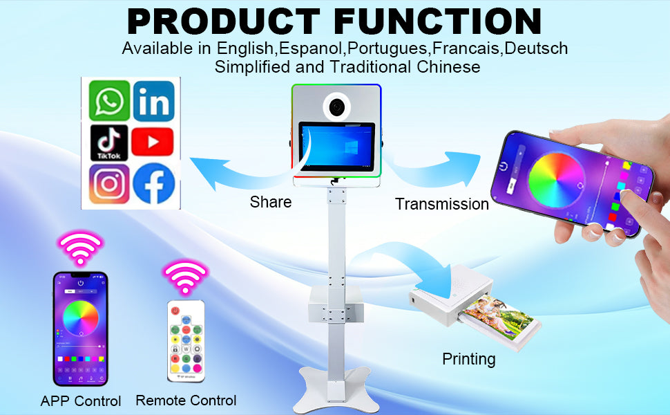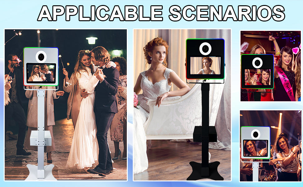 Wide Application: The photobooth machine is perfect for various events, weddings, parties, exhibitions and commercial rentals. You can easily record your wonderful moments in all directions, create amazing images and share them on social medias.