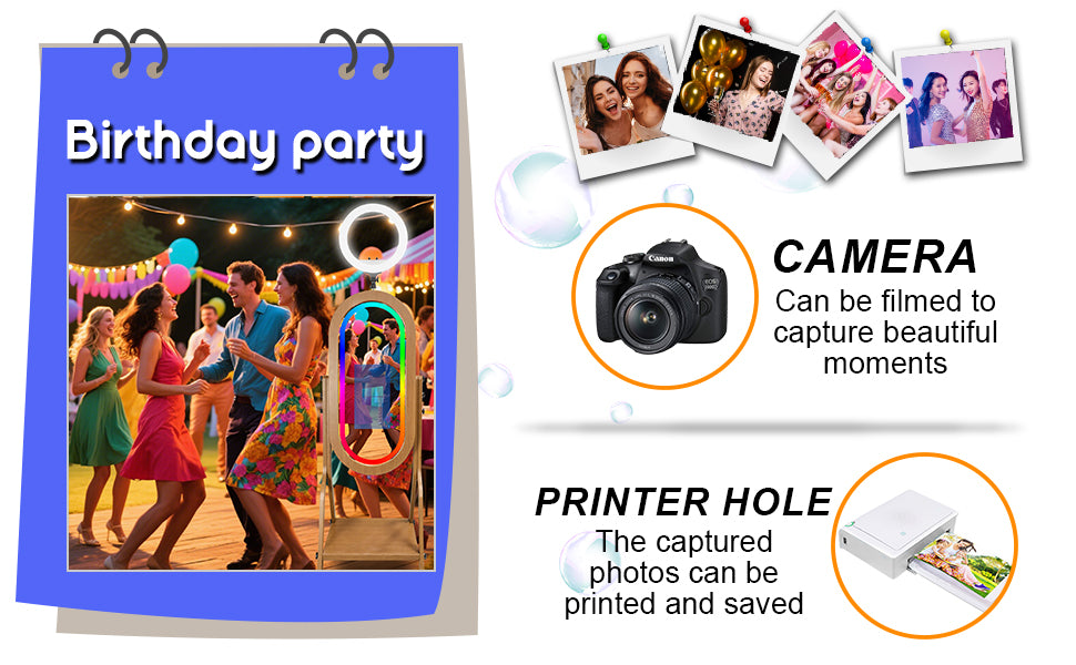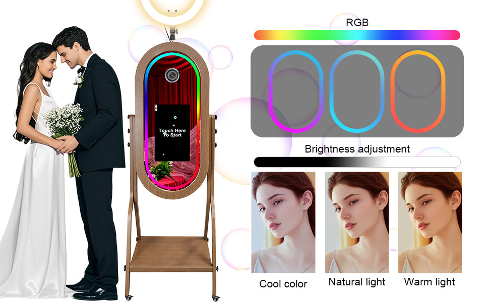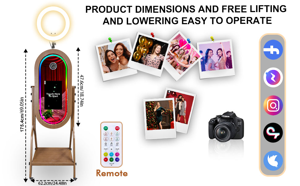 【WHAT MAKES for MIRROR PHOTO BOOTH PLATFORM IN HUGE DEMAND】 Mirror Photo Booth renders an unparalleled photo and video experience for you, your clients, and their party guests, it is definitely the best helper to increase the fun of the party.You can easily record your wonderful moments in all directions, share them on social platforms and create amazing images, videos, and live streaming videos. Suitable for various party occasions!
