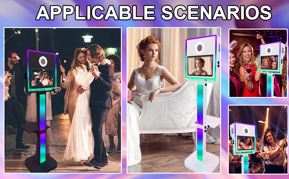 Wide Application: The photobooth machine is perfect for various events, weddings, parties, exhibitions and commercial rentals. You can easily record your wonderful moments in all directions, create amazing images and share them on social medias.