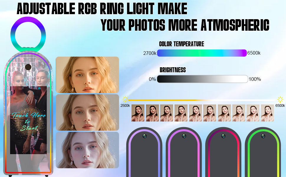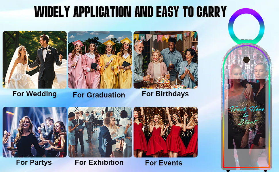 Why Need Mirror Photo Booth: A mirror photo booth is a unique photo interactive device, typically used for various events, weddings, parties, exhibitions, and commercial promotions. The mirror photo booth provides a fun way to engage participants and customers. People can interact in front of the mirror, take pictures freely, enhancing the entertainment value of the event.