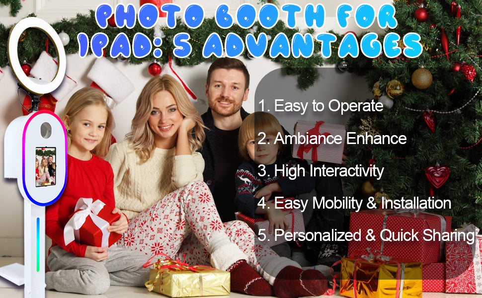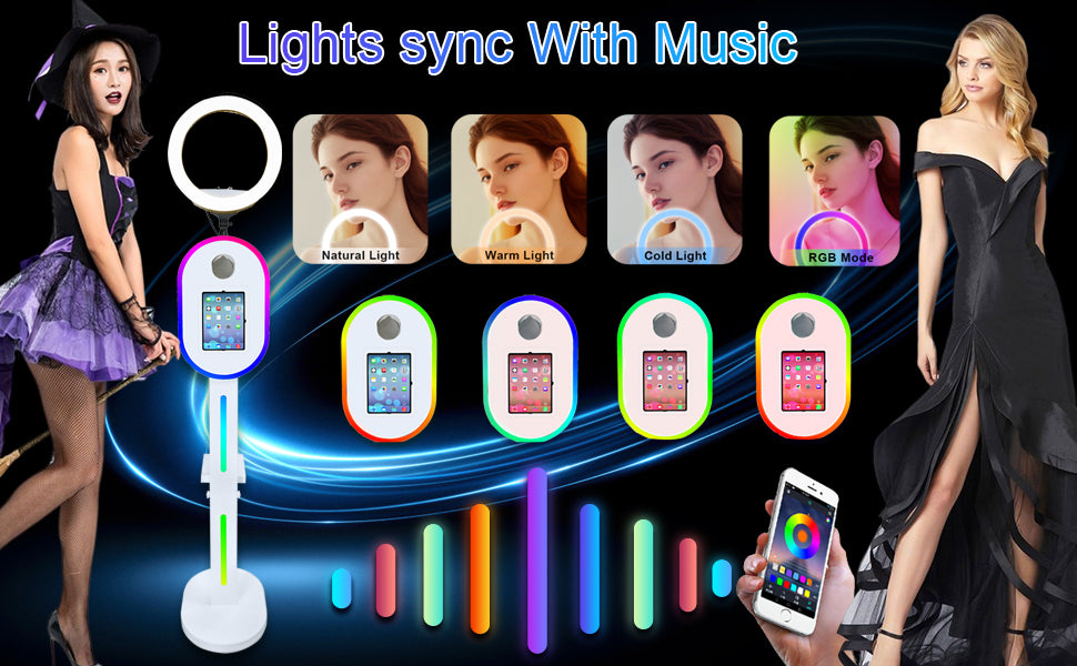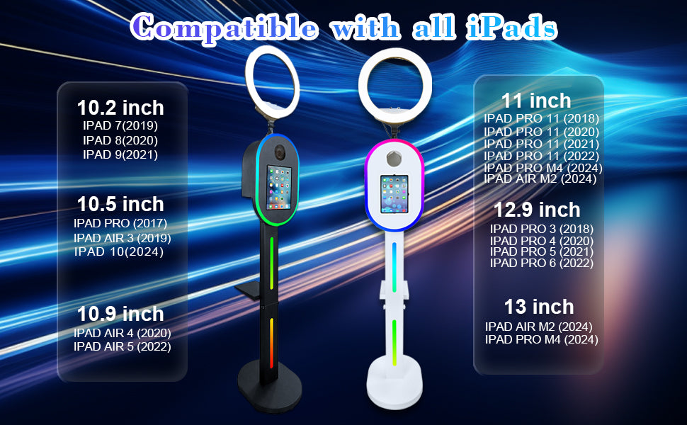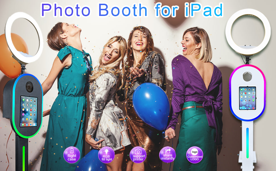 Photo Booth with Ring Light: The portable photo booth selfie machine is compatible with sizes (10.2" 10.9" 11" 12.9") and Camera. For parties, weddings, birthdays, family reunions, graduation ceremony, etc. (No include tablets)