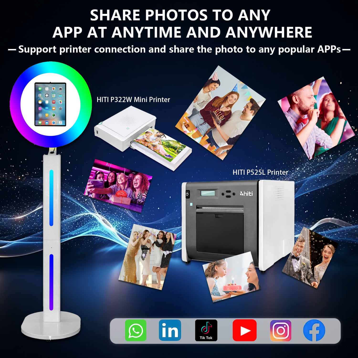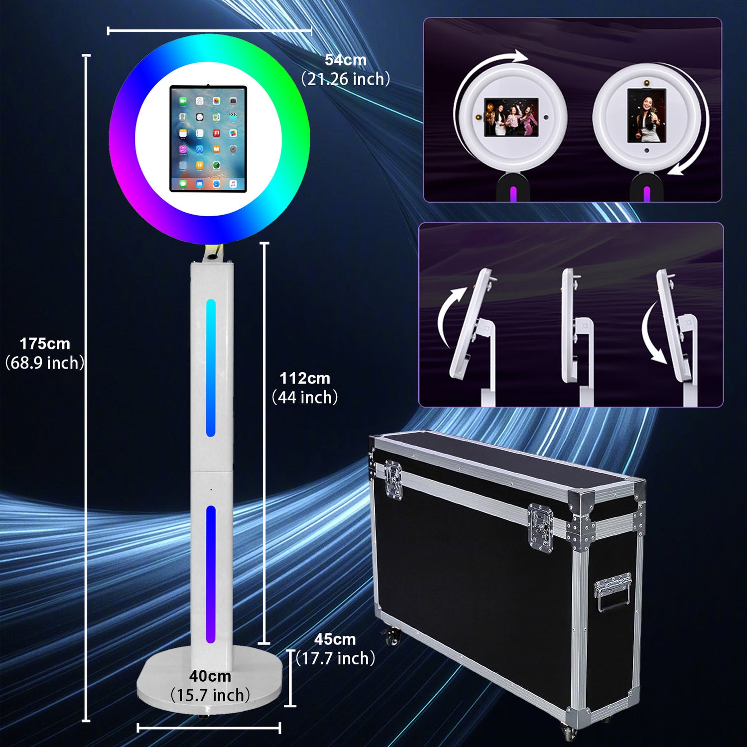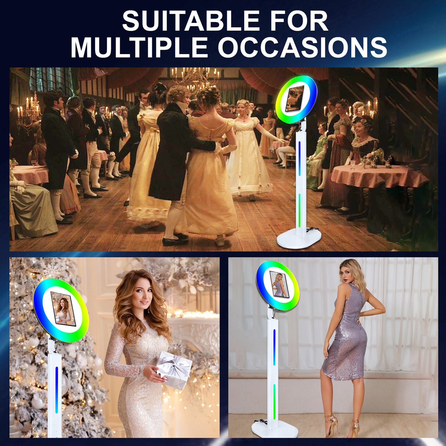 Portable Photo Booth Photobooth Machine I pad 10.2" 10.9" 11" 12.9'' Photo Booth Stand Shell Provide Cyratok Software RGB Ring Light,Music Sync Aluminum Alloy Selfie Photo Booth for Parties Wedding
