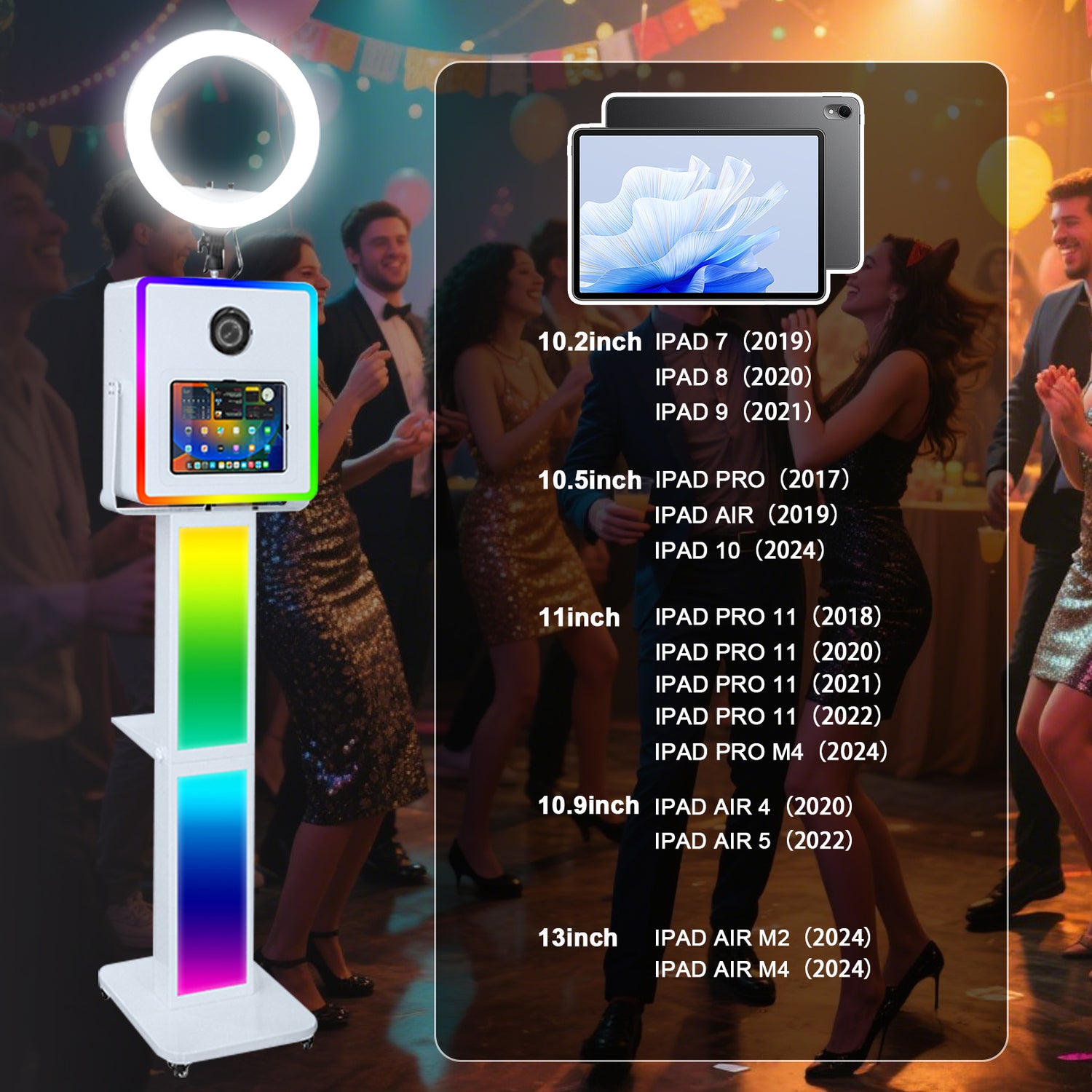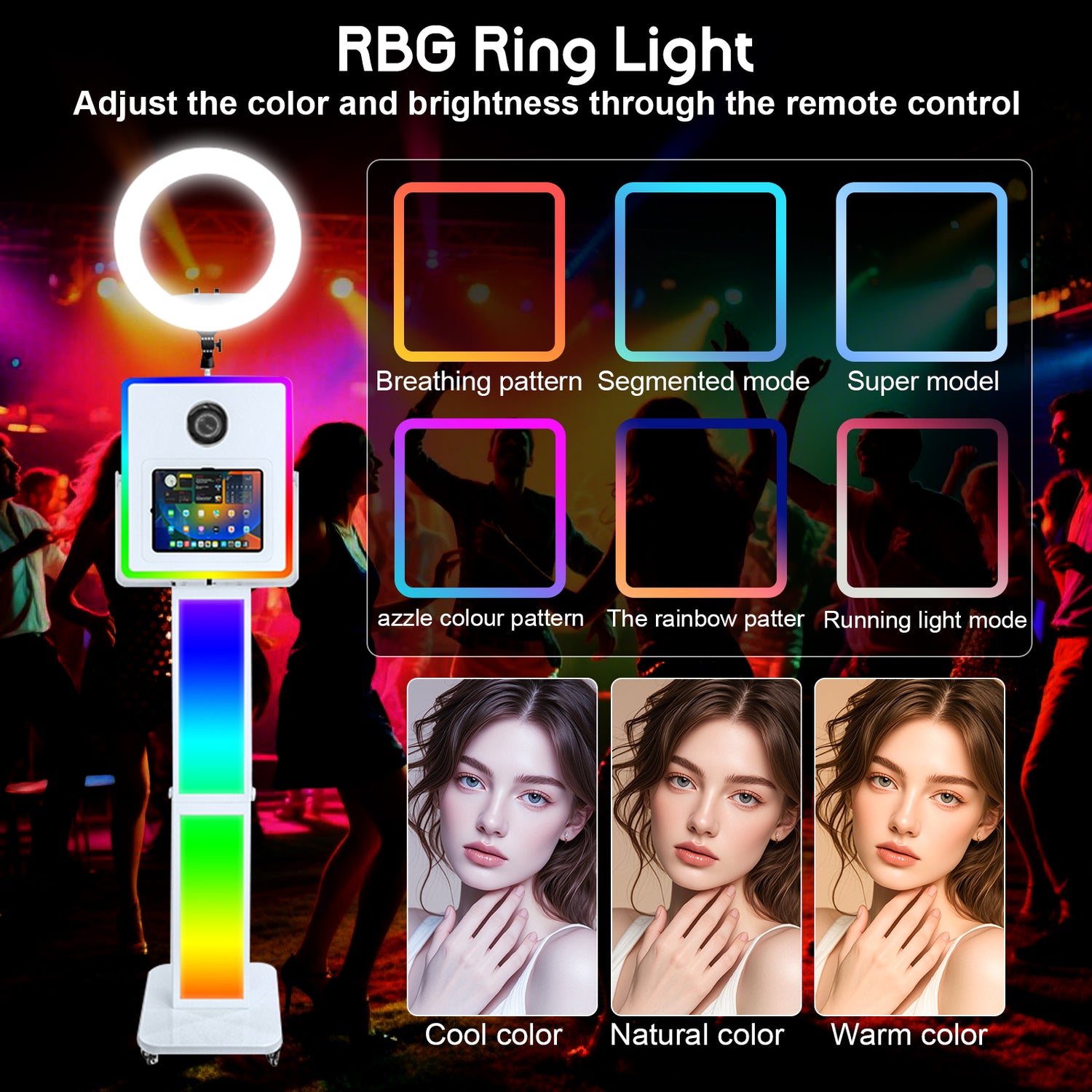 3 in 1 Portable Photo Booth Machine for Ipad 10.2" 10.9" 11" 12.9'' PhotoBooth Stand Shell Provide Cyratok Software RGB Ring Light Music Sync Aluminum Alloy Selfie Photo Booth for Parties Weddings Events